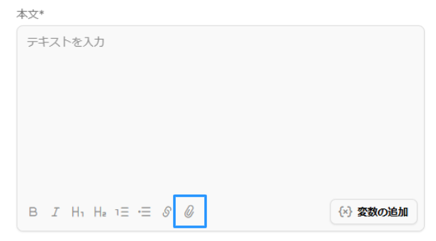 メッセージ作成画面の本文入力箇所からファイルの添付ができます。