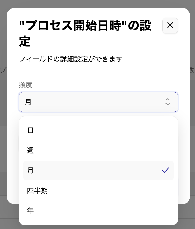 「〜日時」という名称の日付時刻に関するグルーピング・フィルタは、表示する粒度を以下から選択できます。