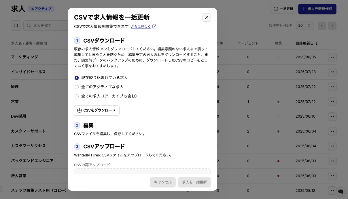 求人情報をCSVファイルを用いて一括ダウンロードする / 編集・更新する