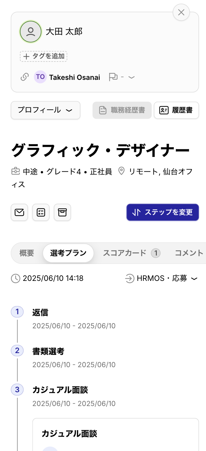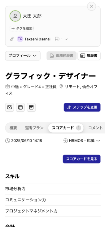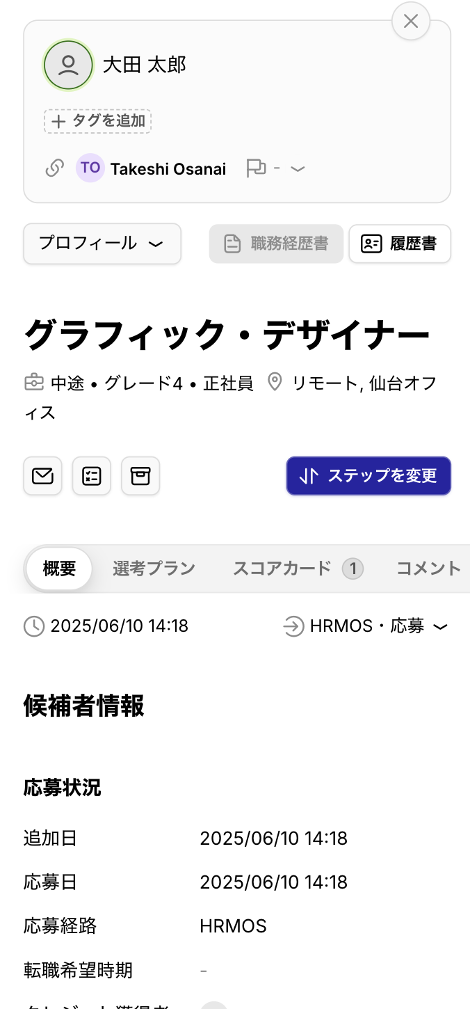 候補者詳細画面の以下の画面が、モバイルデバイスに対応できるようになりました。