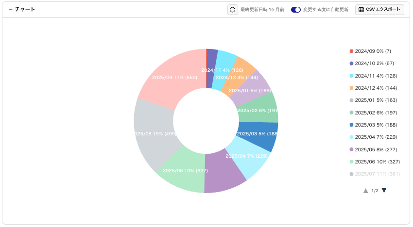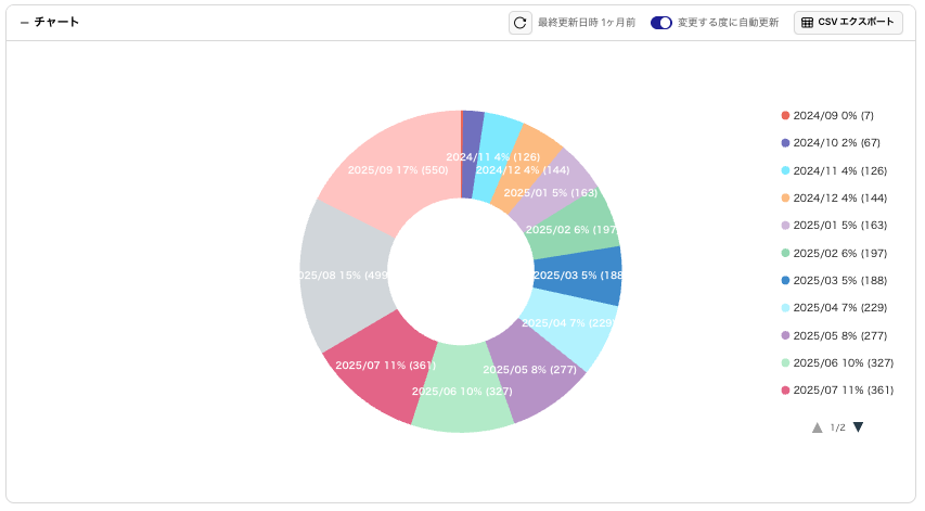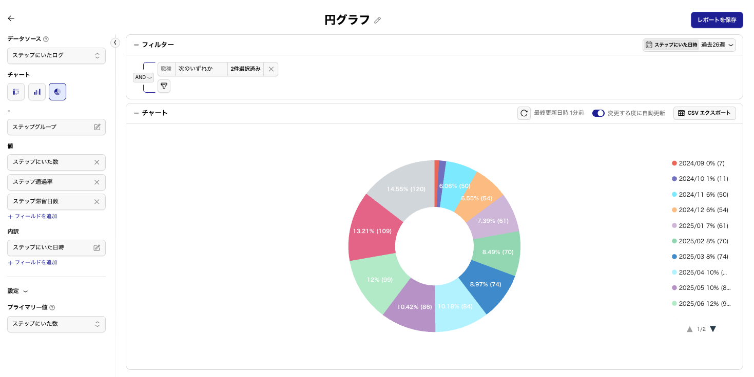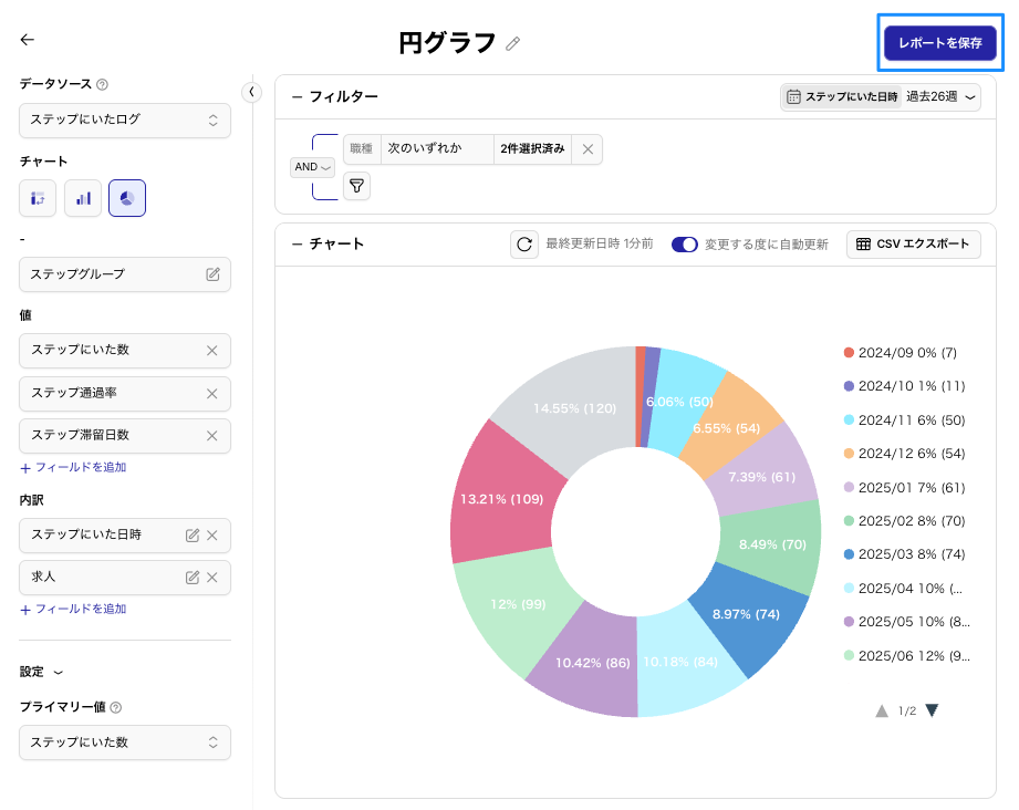 【円グラフ】レポートの作成 / 保存 / CSVエクスポート / 編集 / アーカイブ / 削除手順について
