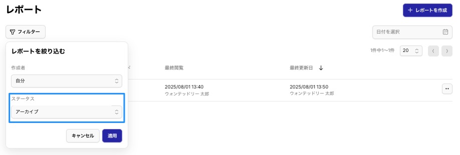 ※アーカイブしたレポートをアクティブに戻したい場合