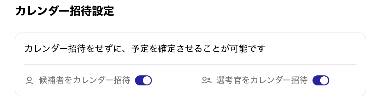 3.候補者・選考官どちらかのカレンダー招待をONにした場合