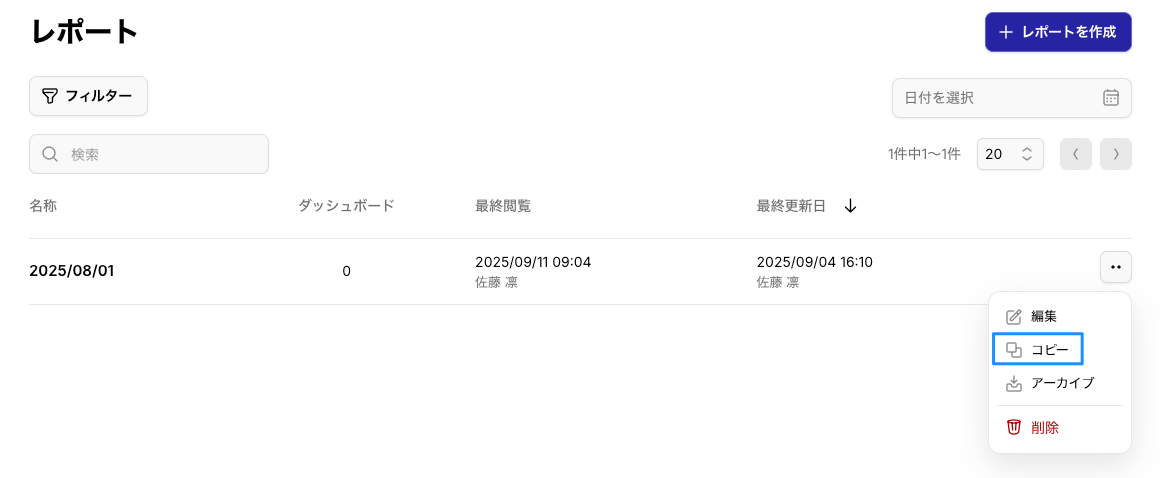 レポートをコピーする