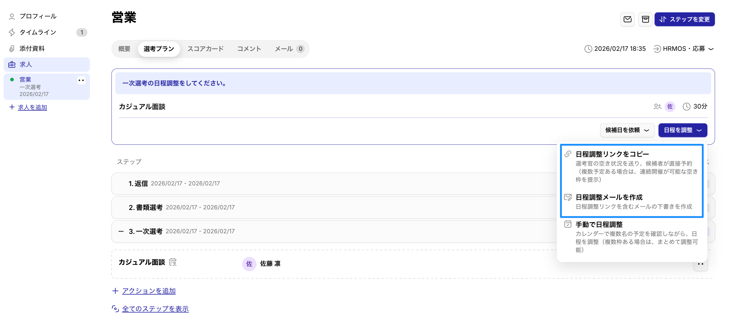 (例:候補者への日程調整依頼メール、エージェントに求人をアサインしたことを通知するメール)