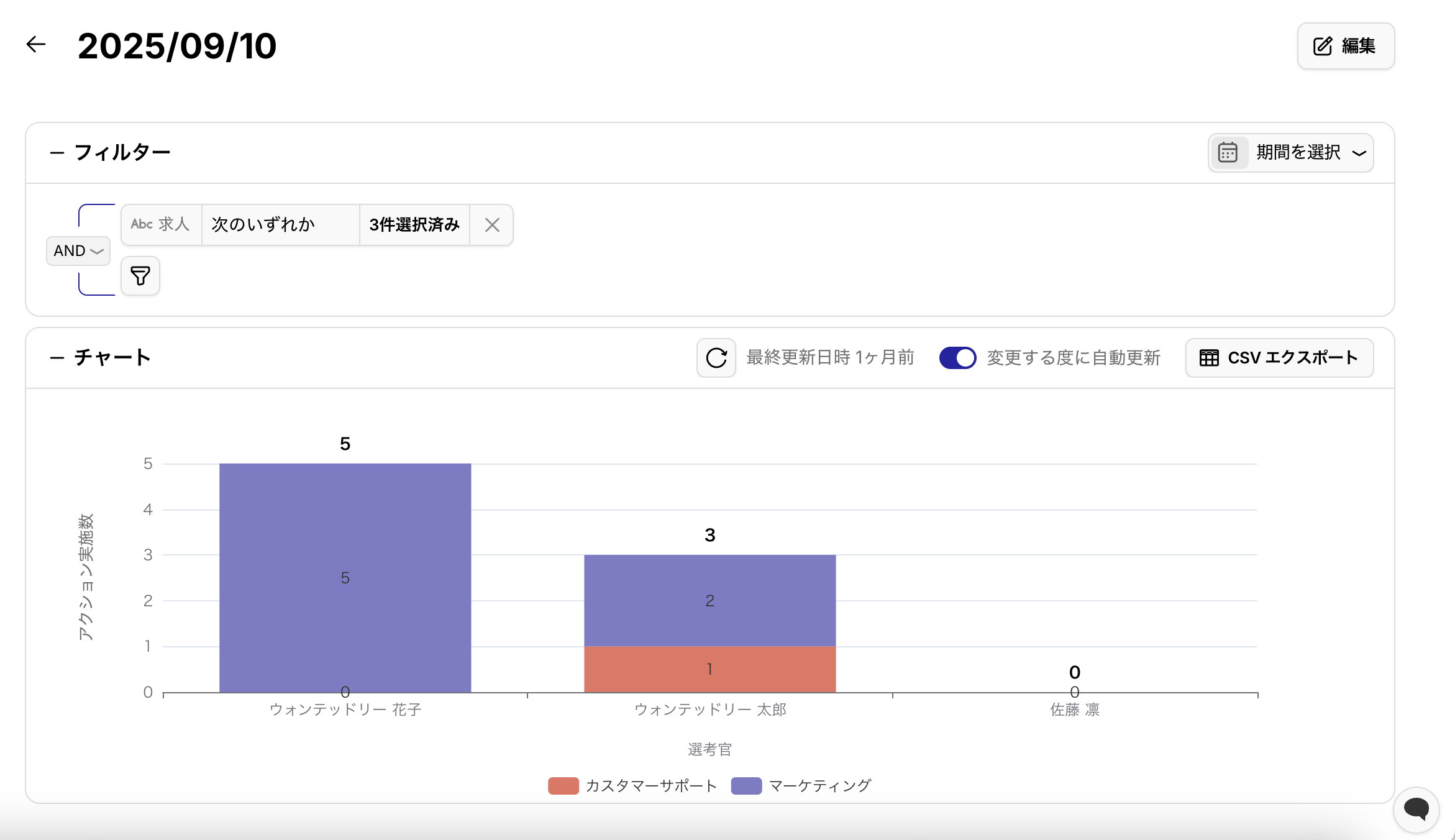 2025/09/10 -【アップデート】作成済みのレポートの閲覧機能が追加されました 更新 2025年09月25日 04:54 カテゴリーレポート対象プラングロース, プロフェッショナル, エンタプライズ作成済みのレポートの閲覧機能が追加されました。レポート一覧に表示された該当のレポートをクリックすると閲覧専用画面に遷移します。 ▼レポート一覧画面 ▼閲覧画面