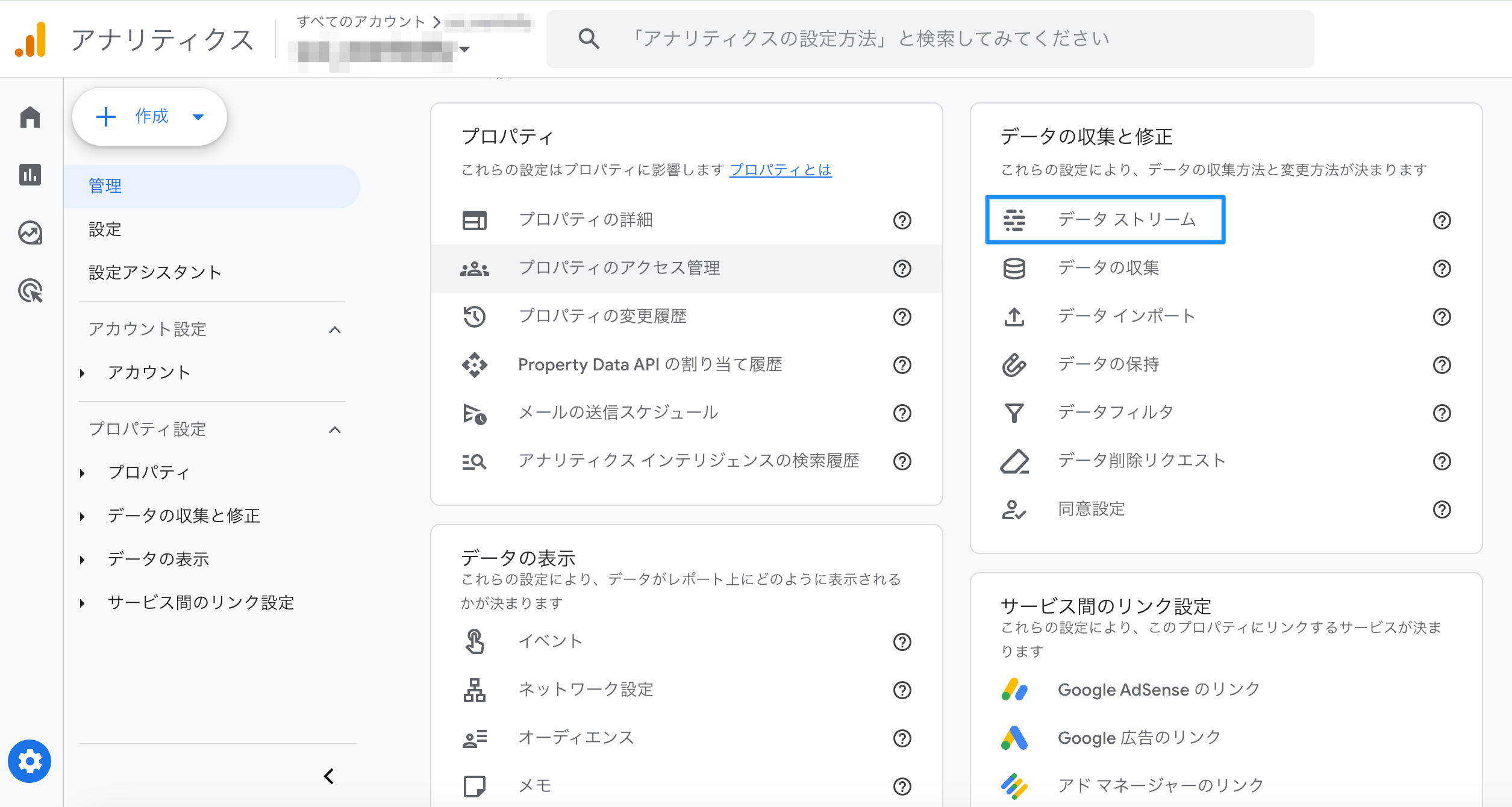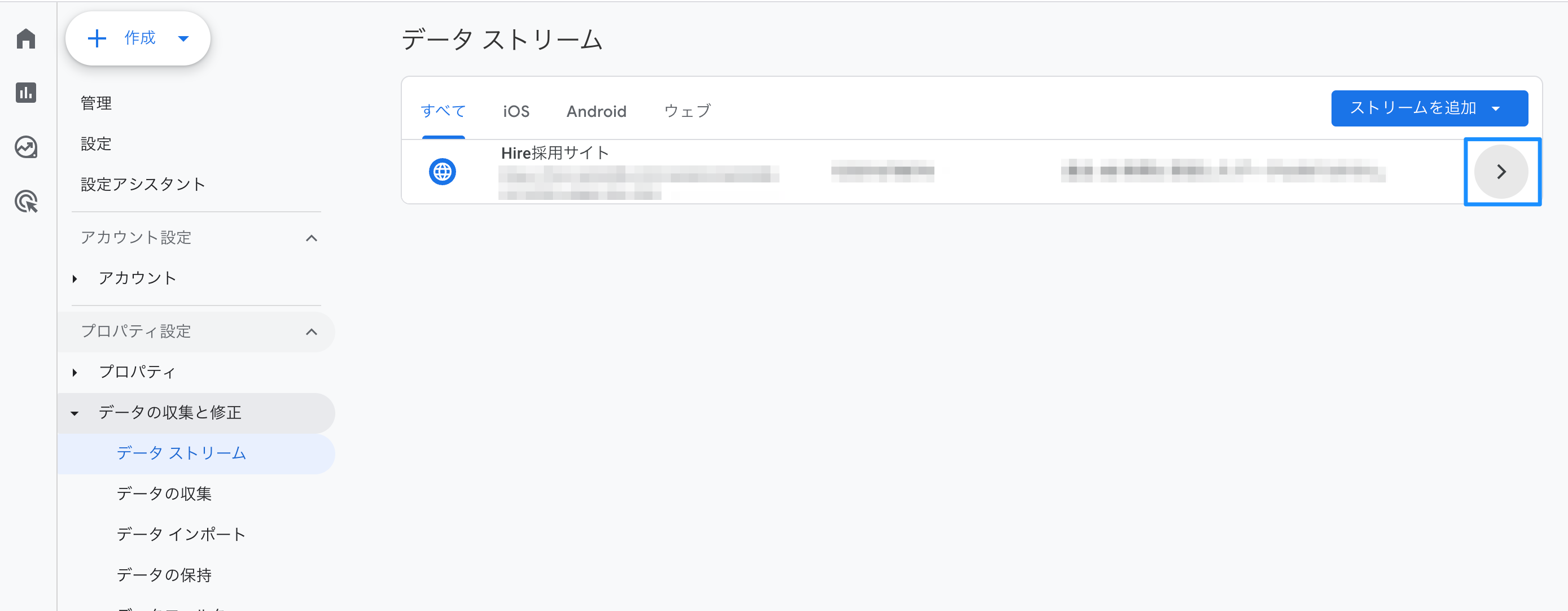 3) 「データストリーム」をクリックする