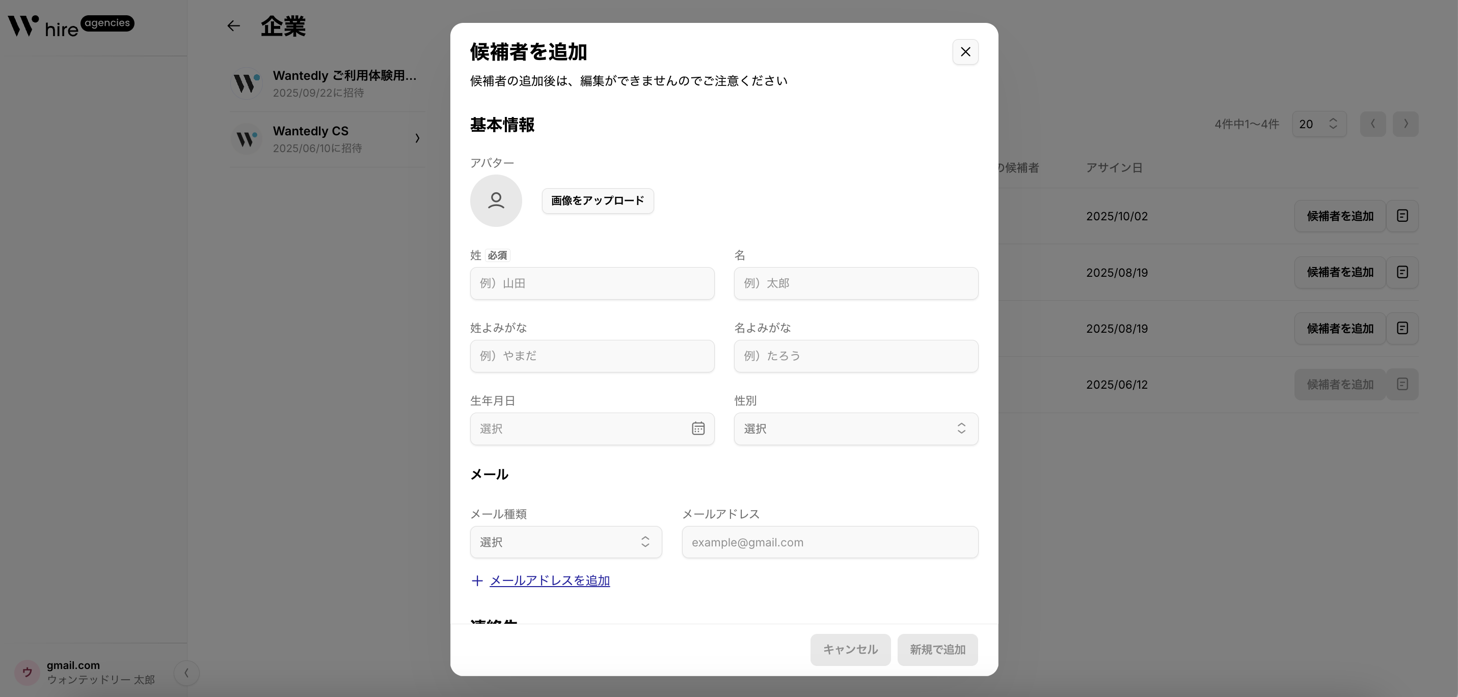 - エージェントが候補者を追加する際の各項目を非表示にしたり、必須にするカスタマイズができます。