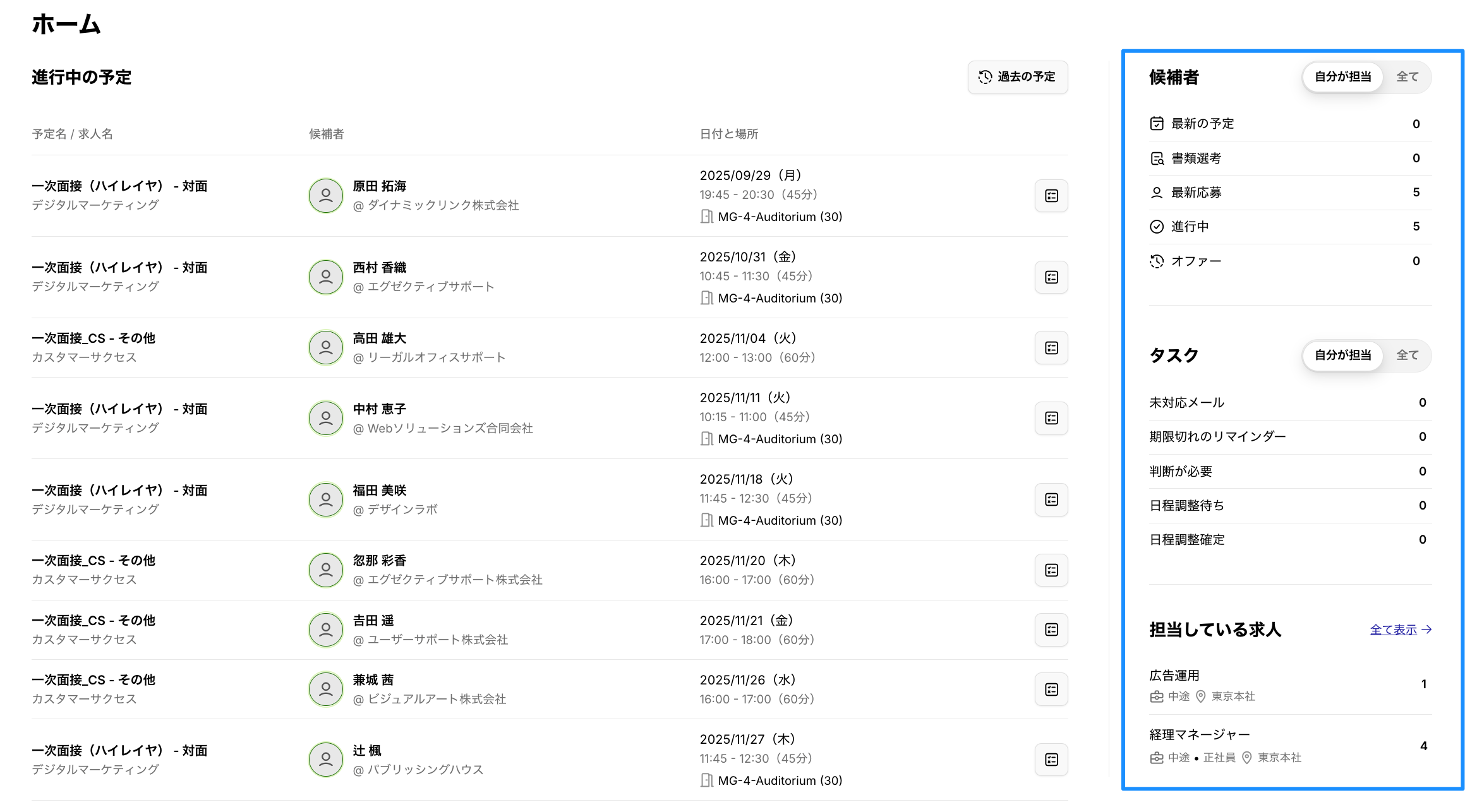 ホーム画面に自分が担当している候補者・タスク・求人が一覧で表示されるダッシュボード機能がリリースされました。