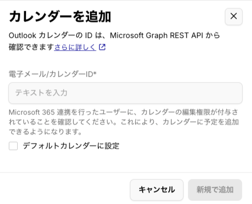 4) [電子メール / カレンダーID]欄に登録したいOutlookカレンダーIDを入力する