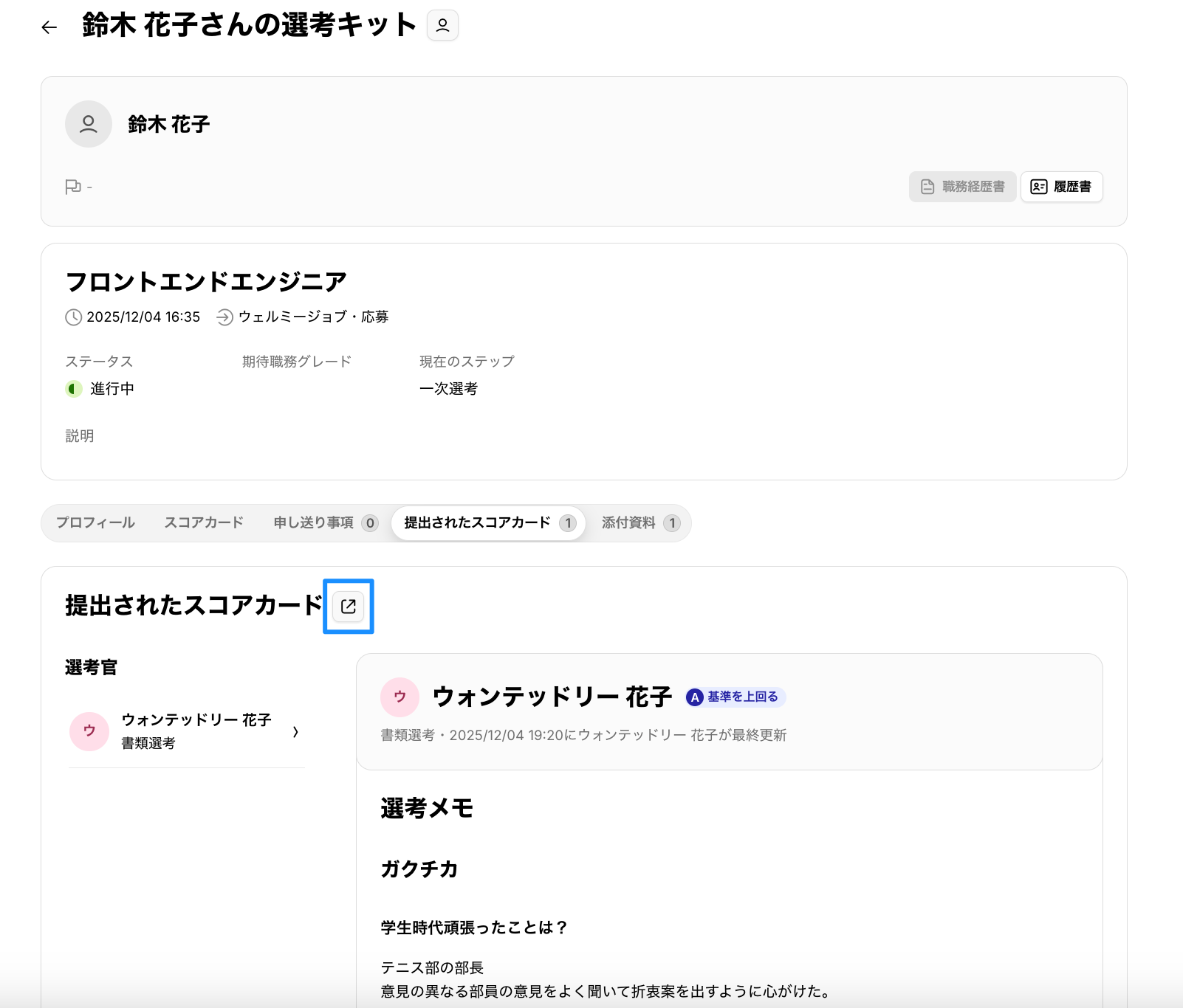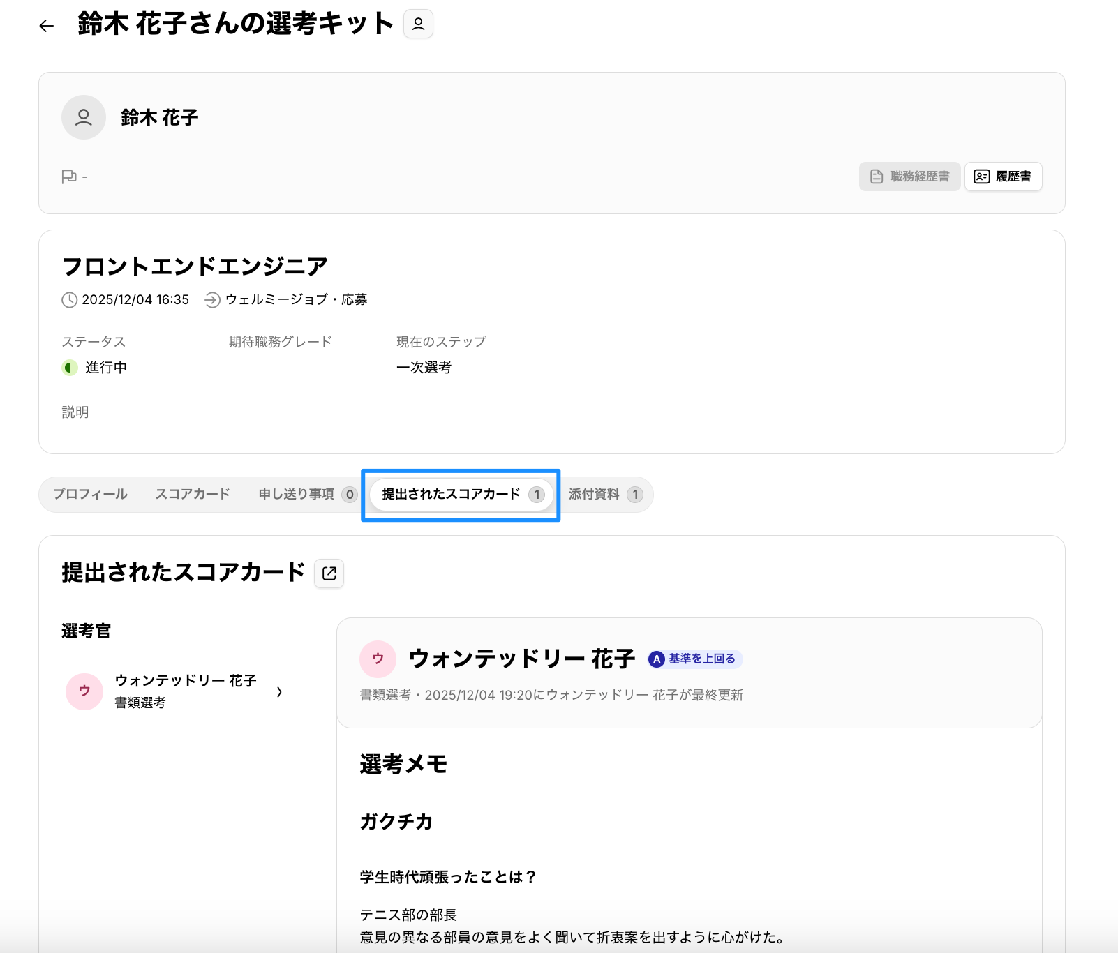 選考キットに「提出されたスコアカード」タブを追加しました。