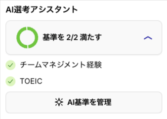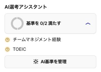 ※[AI基準を管理] をクリックすると、「書類選考AIアシスタント」設定ページへ遷移します。