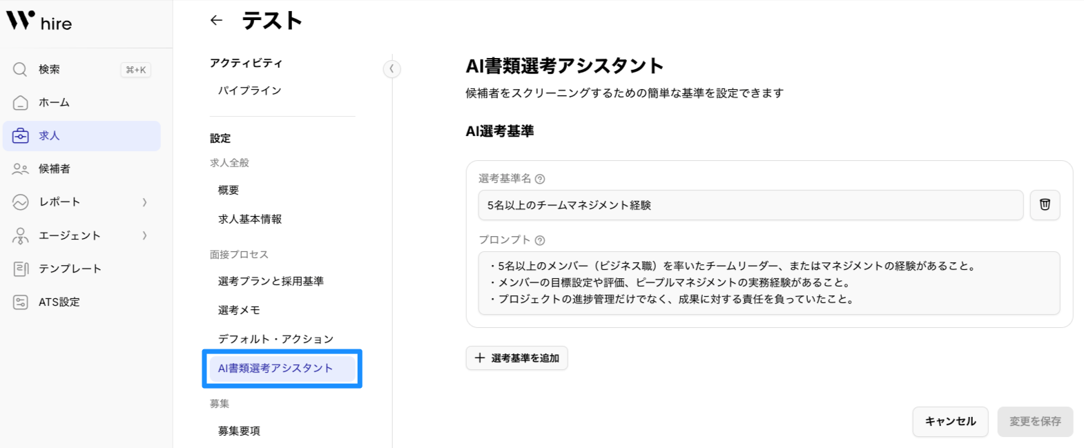 - 選考基準の説明: AIへの具体的な指示