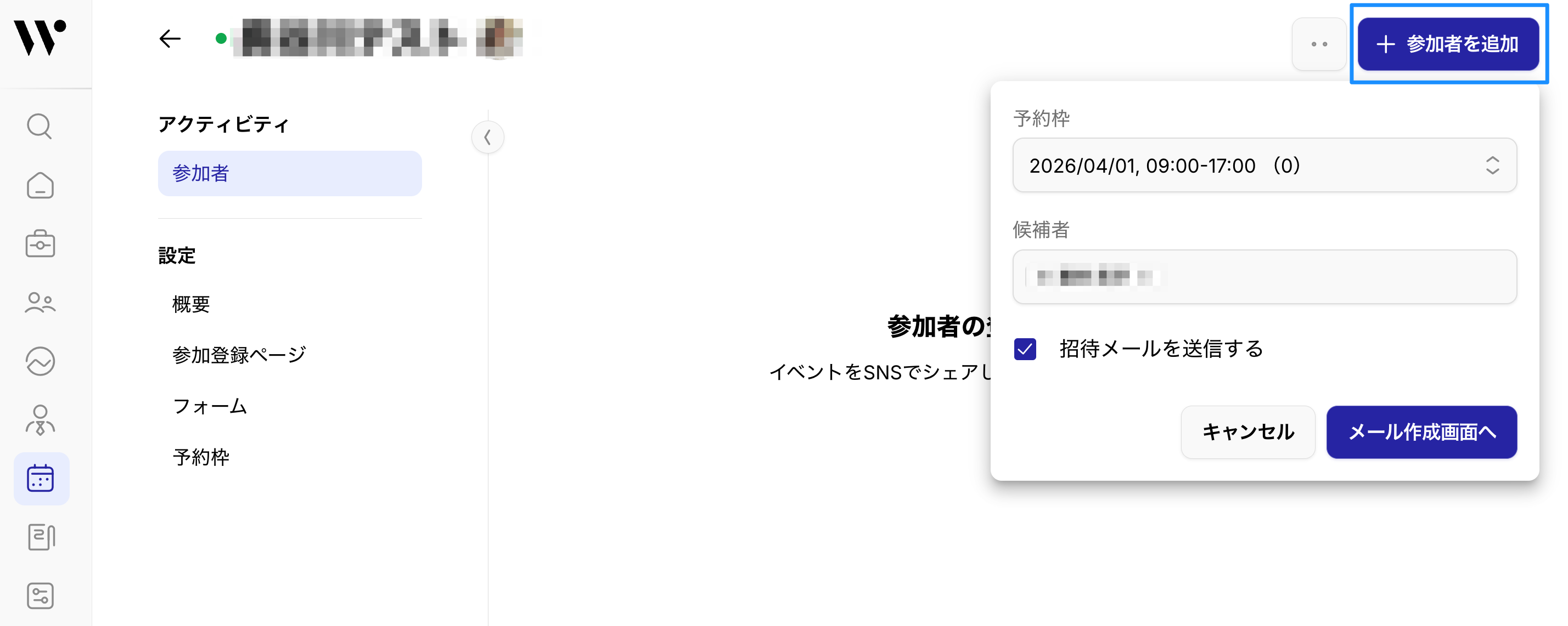 Wantedly Hireに登録済みの候補者を、イベントの参加者として直接追加できます。