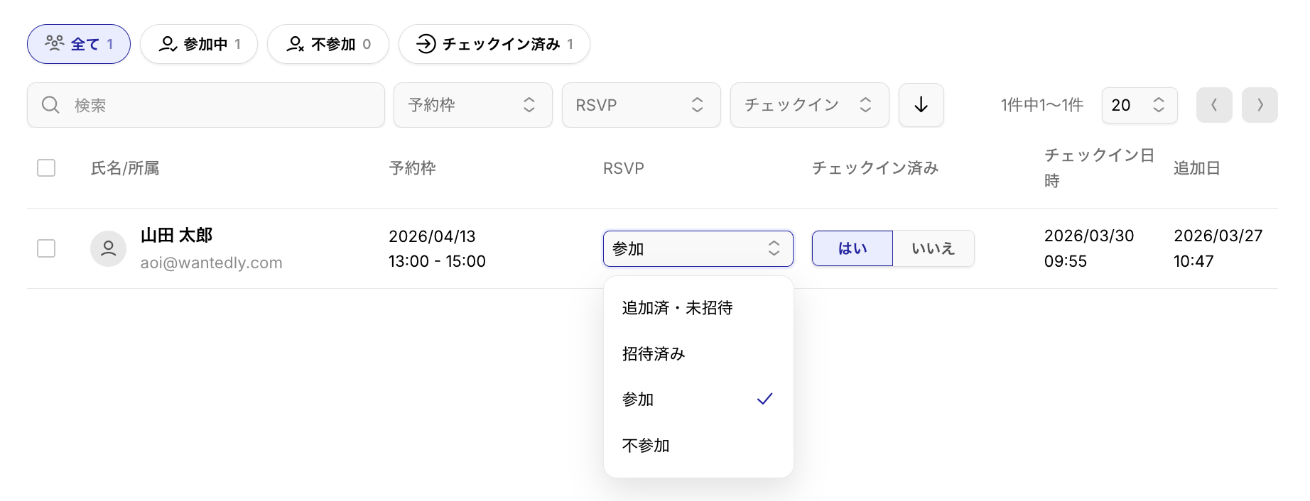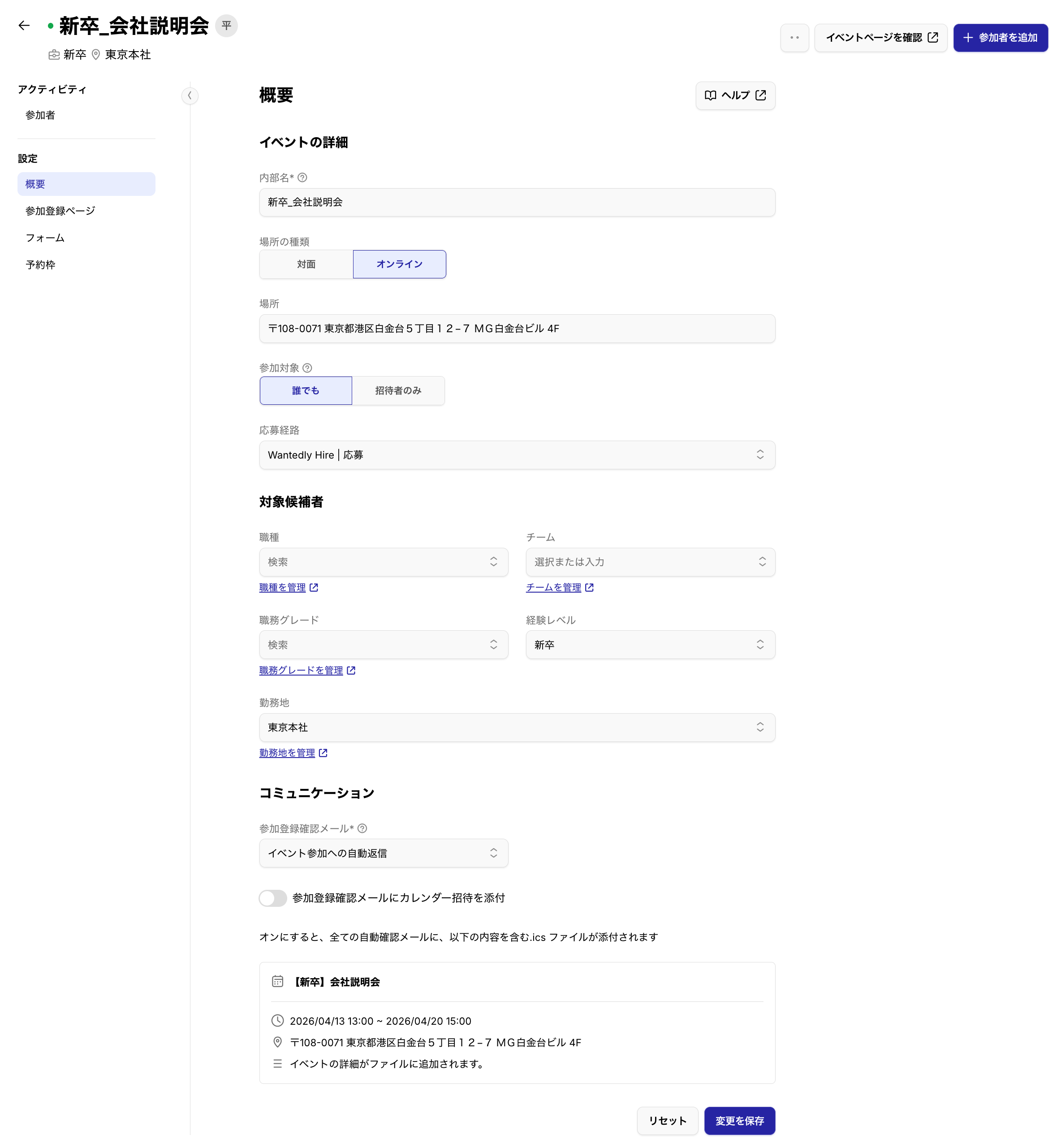 イベントへの応募受付から当日の参加者管理までを一元化し、採用活動の効率化が見込めます。