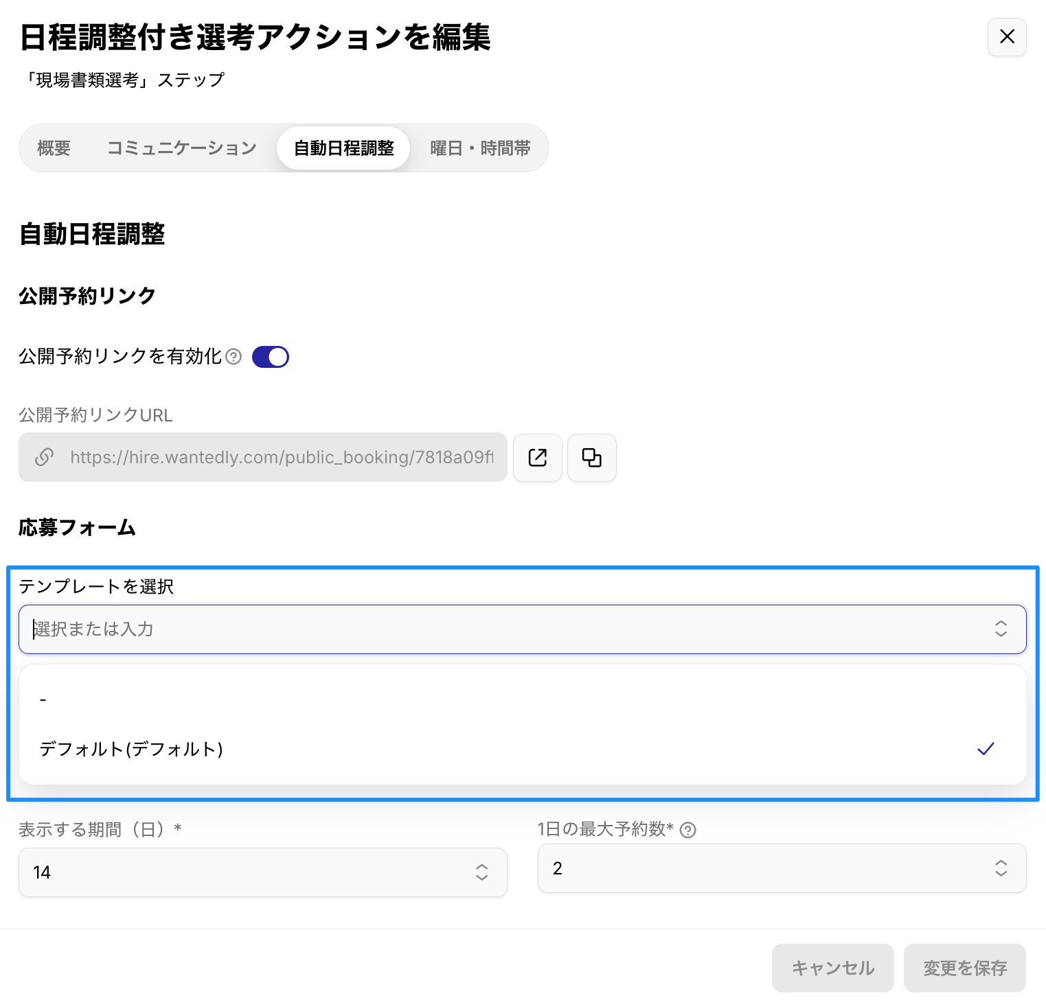 ※「-」を選択した場合は、従来通りの日程調整フローになります(応募フォームは表示されません)。