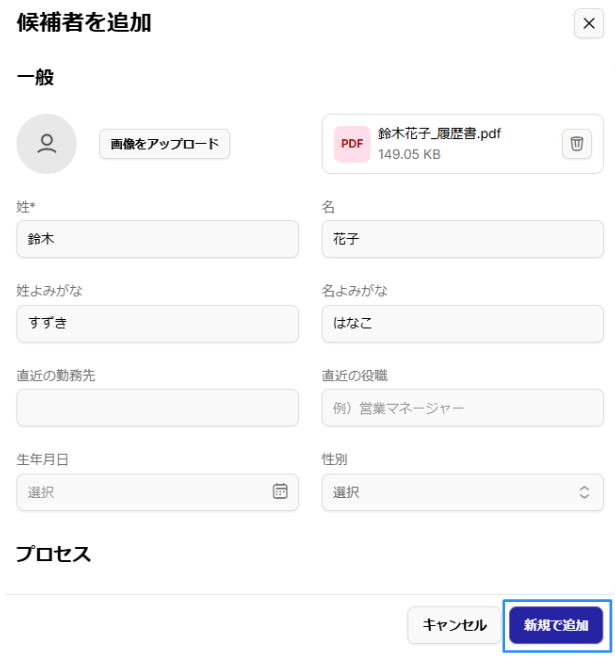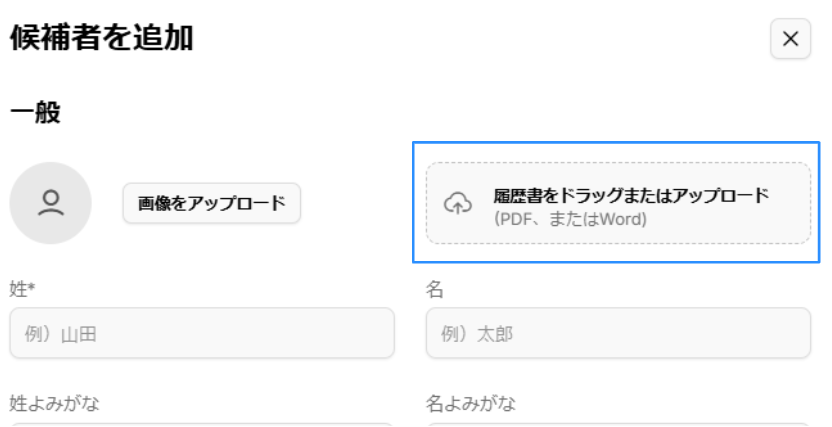 候補者追加の最初にアップロードを実行し、その後手入力で修正することをおすすめします。