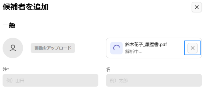 3) ファイルを選択するとアップロードが始まり、完了すると候補者情報が自動入力される