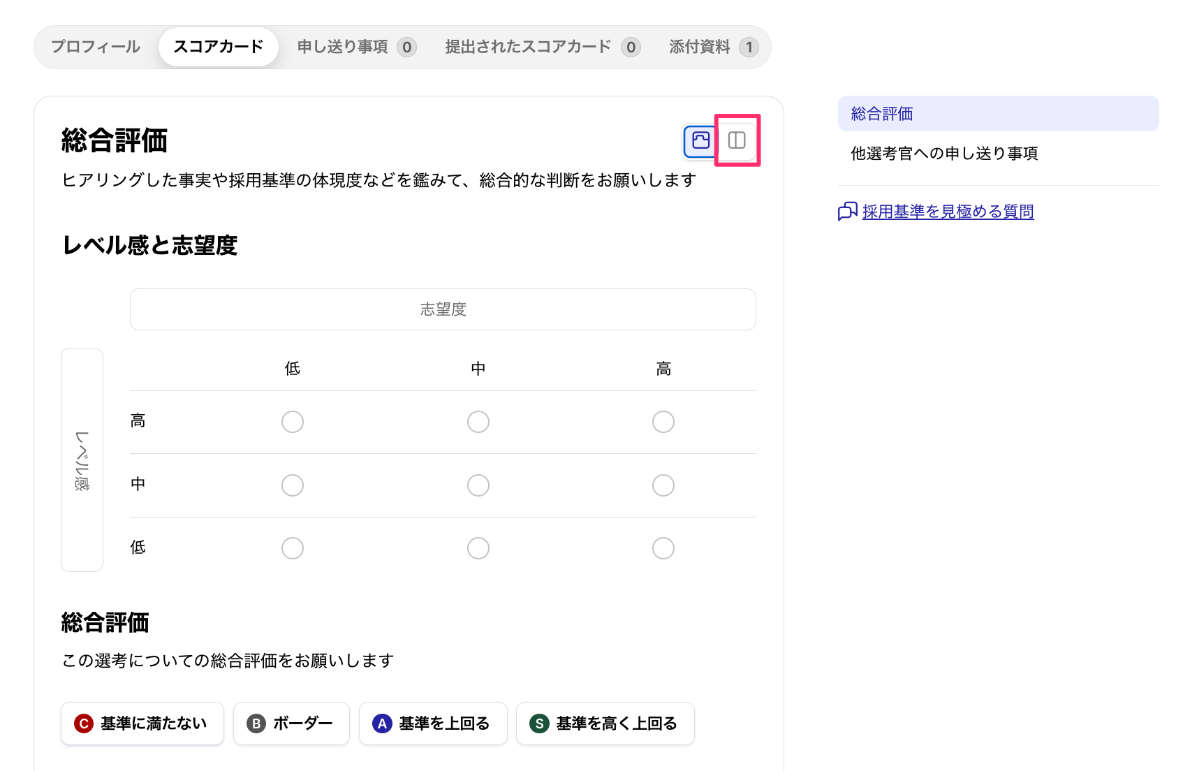スコアカードの入力フォームを、画面の右側に取り出して独立したパネルとして表示できるようになりました。